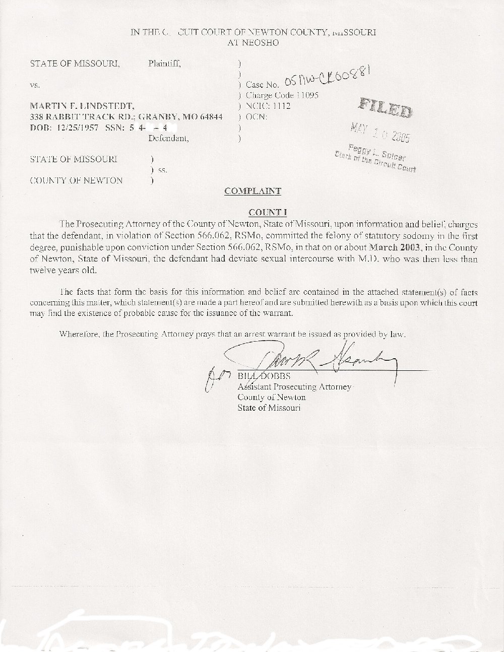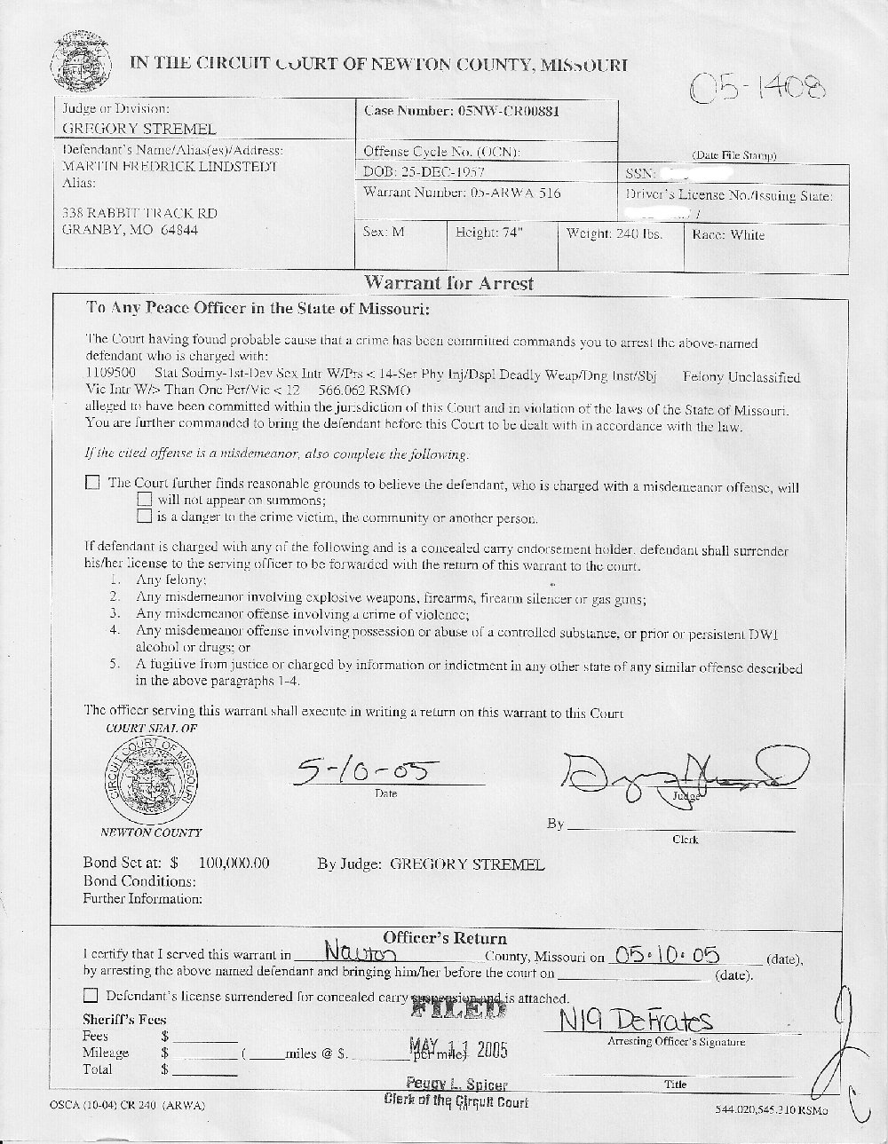 . I Am Arrested On Bogus Statutory Sodomy Charges -- May 10, 2005